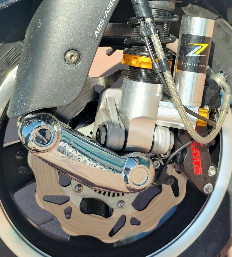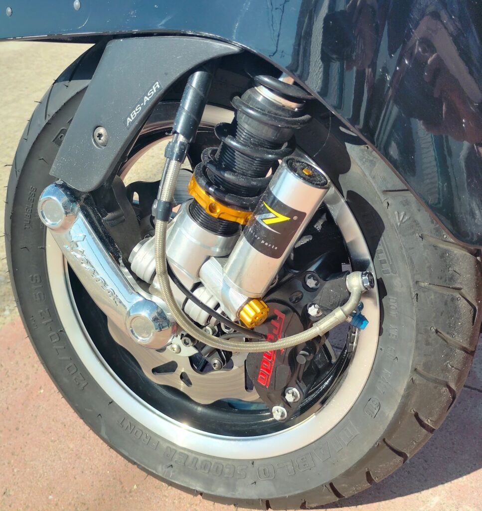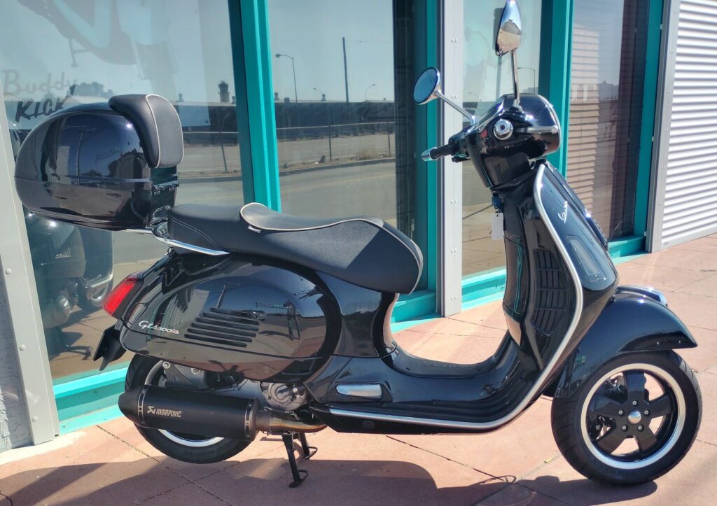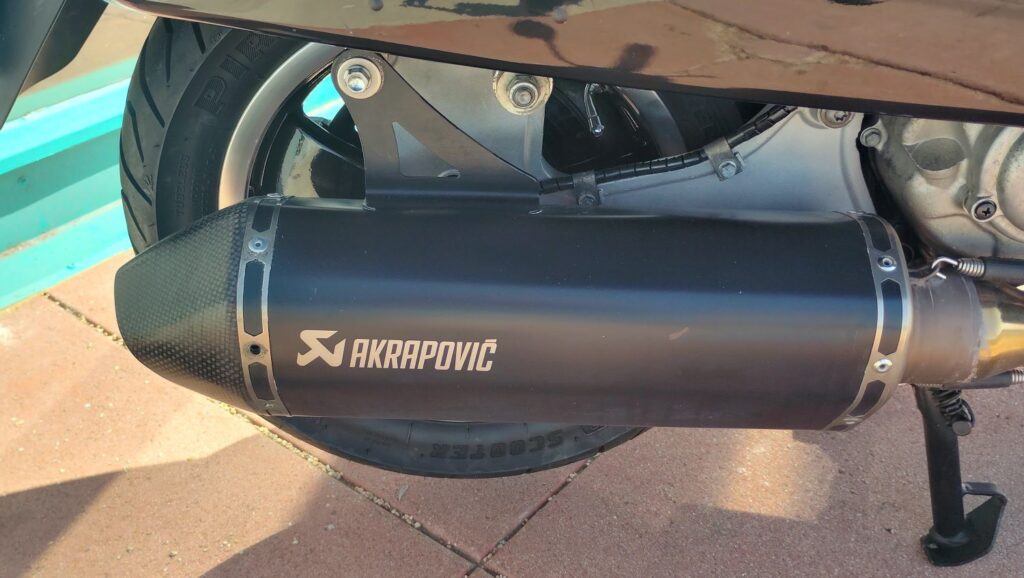 Malossi cylinder kit and head, along with the Akrapovic performance pipe. Just as much power as a new HPE 300 and sounds even better! Full LED Turn Signal kit and LED Tail Light upgrade. Extremely expensive upgraded performance ABS Frando big disc brake kit with daisy wheel disc and Zelioni shocks. Also includes a factory color matched topcase. Paint is nice and still shines.