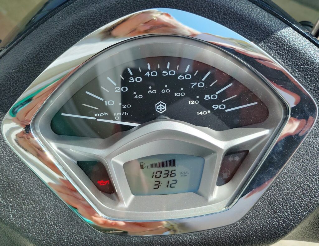 We just took this as a trade on a new Vespa Primavera 150. Mechanically, the bike is like new… and the body, paint, fasteners and bright work look flawless!. Registration was recently paid up. Gets 100 mpg and can hit a top speed of 65 mph. Fuel injection delivers smooth acceleration. Under seat storage as well as a glovebox with USB port. Everything works as it should.