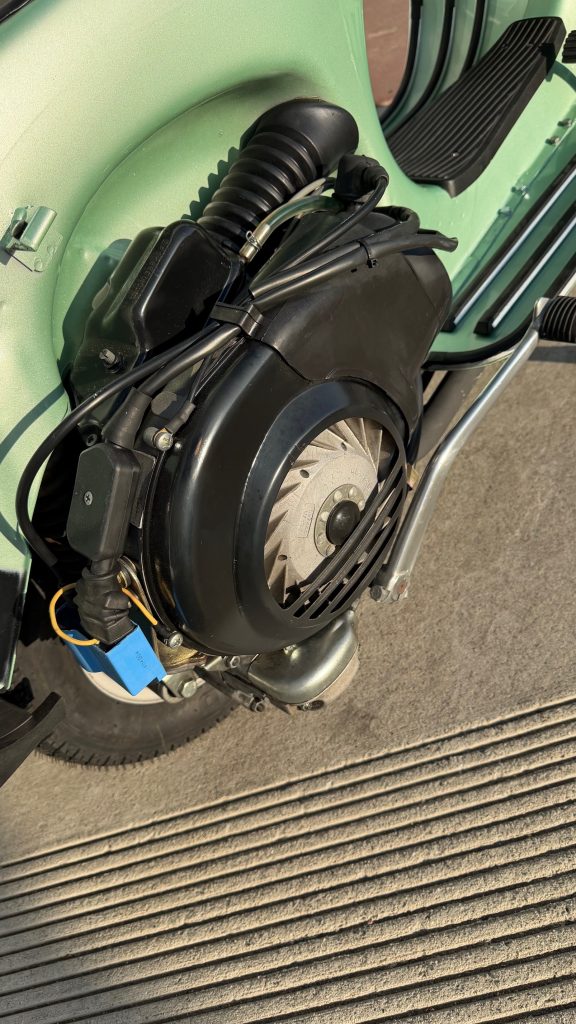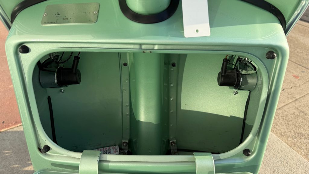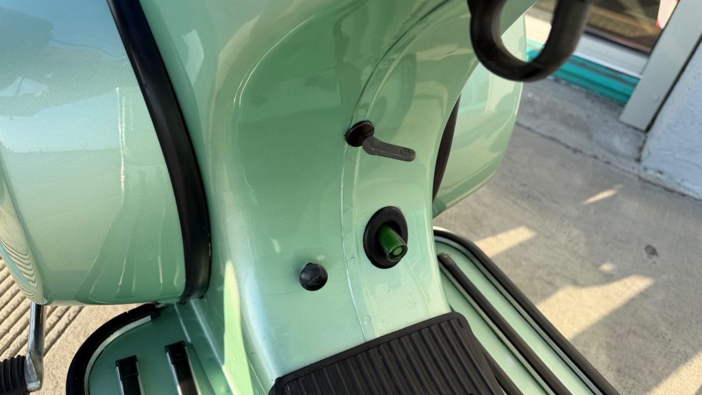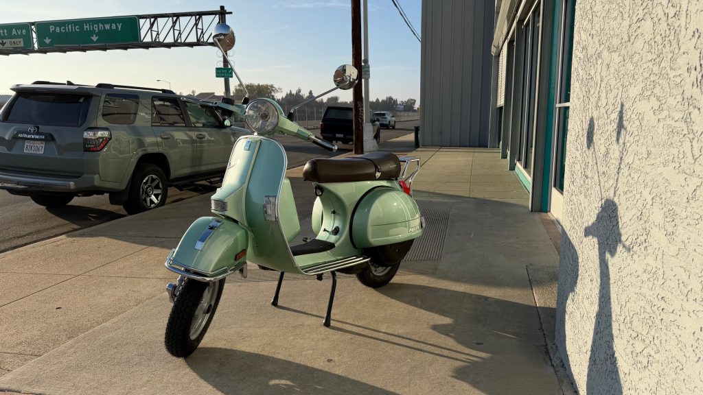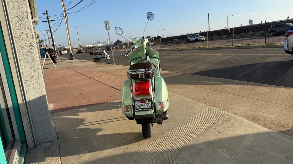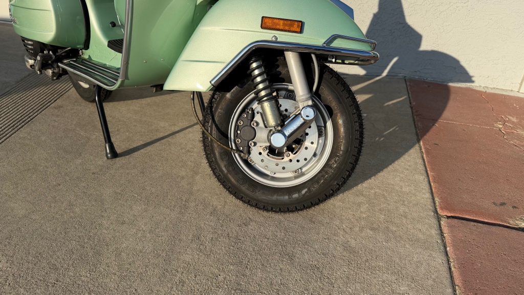 Here is a CLASSIC 2005 Vespa PX 150 “Serie America”, #378 of 500 made for the USA! This would be the last year a 2-Stroke 4-Speed “shifty” would be brought into the USA. None were cleared for CA, as they could not make it through C.A.R.B. (California Air Resource Board), however this example has been registered and titled in California, so it is ready to go. Features electric and old school kick start, disc brake, auto lube oil mix, manual choke, spare tire all wrapped in an immaculate gorgeous vintage green pain scheme. It runs like a brand new 2-stroke, and is a blast to shift through the gears while the exhaust serenades you to that old time “Pop pop pop” sound of another era.